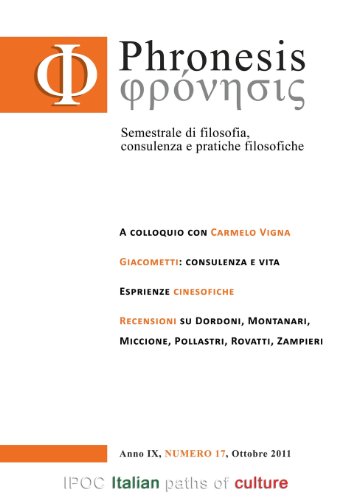 Giorgio Giacometti, L'incantesimo di Orfeo. Sulla "feconda inapplicabilità" della consulenza filosofica alla vita. Angela Tomarchio, Pratiche Cinesofiche. Un diario. Davide Miccione, Dialogo con Carmelo Vigna. Augusto Cavadi e Carlo Basili, Lettere su Stefano Zampieri, Introduzione alla vita filosofica. Paolo Cervari, Pier Aldo Rovatti (a cura di), Consulente e filosofo. Osservatorio critico sulle.